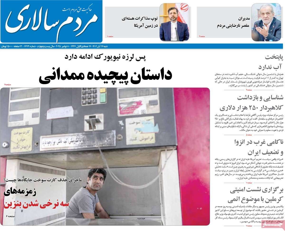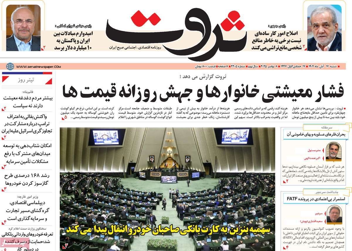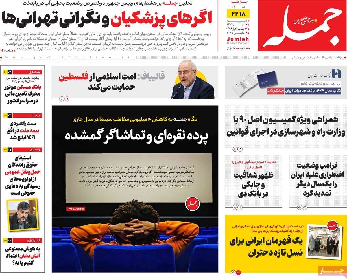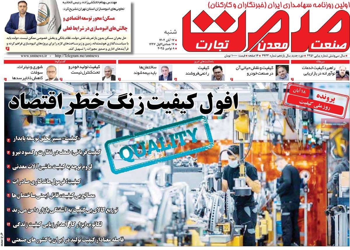 صفحه نخست روزنامههای شنبه ۱۷ آبان ۱۴۰۴
