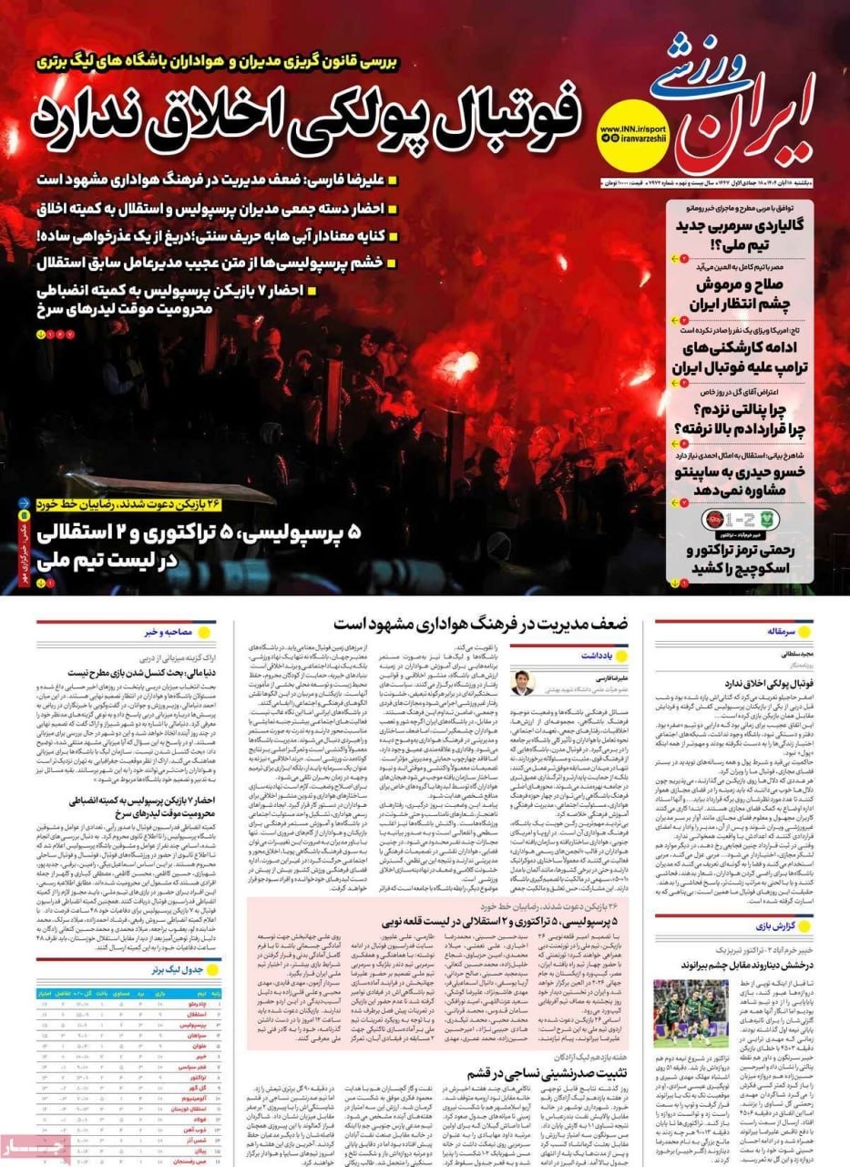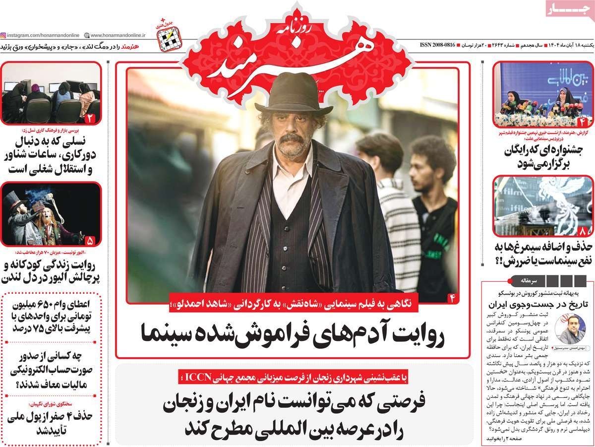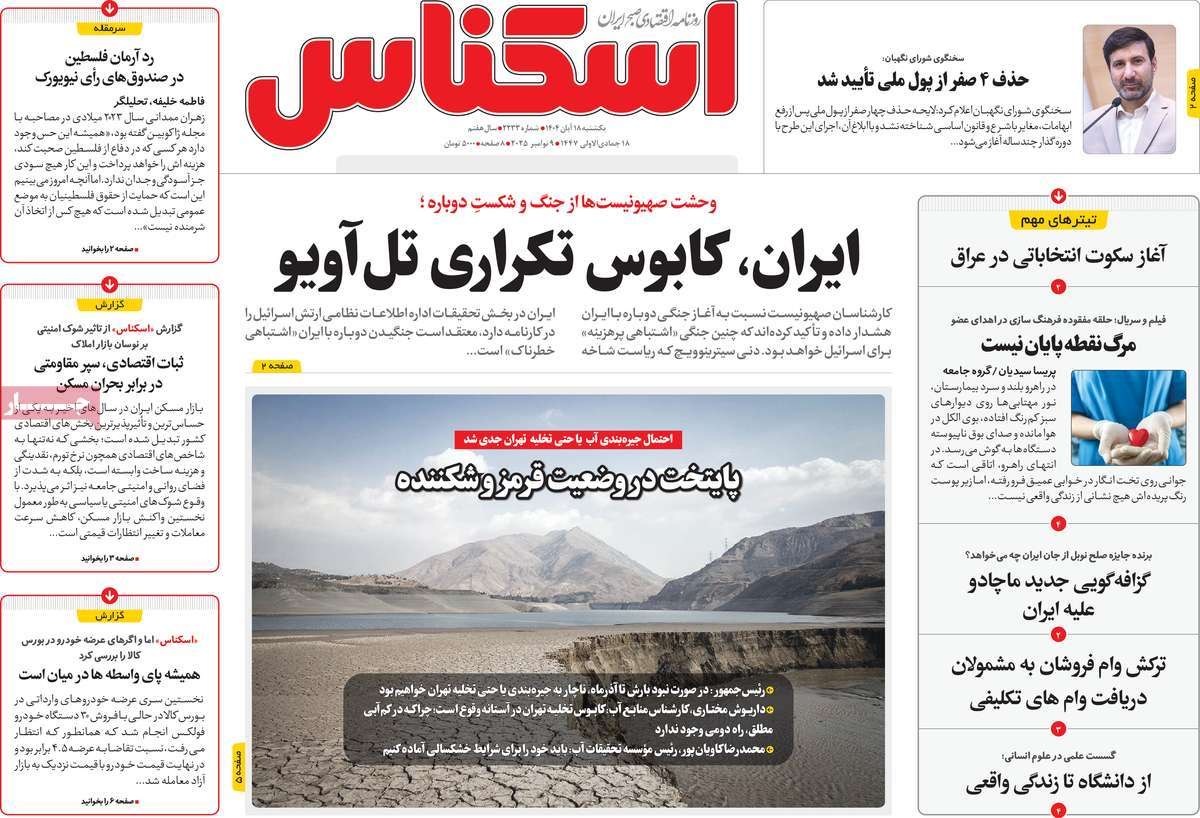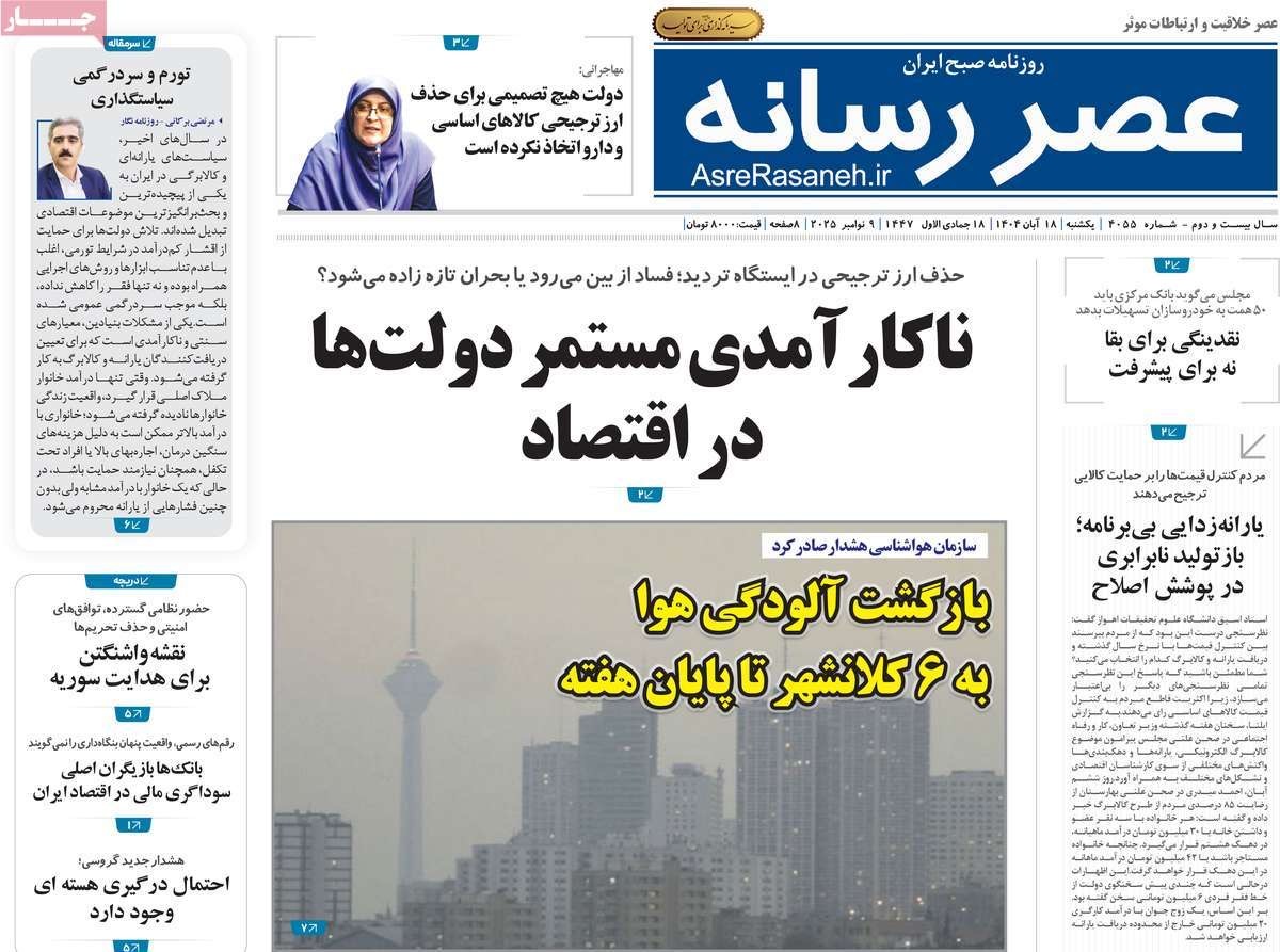 صفحه نخست روزنامههای یکشنبه ۱۸ آبان ۱۴۰۴