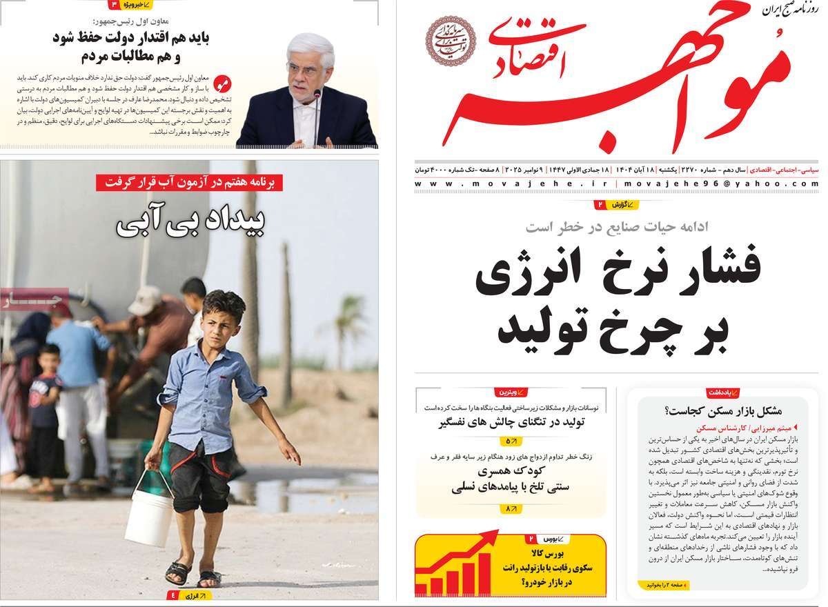 صفحه نخست روزنامههای یکشنبه ۱۸ آبان ۱۴۰۴ را که به محدودیت شبانه آب در تهران، بازگشت آلودگی هوا، تایید حذف ۴ صفر از پول ملی و مهمترین رویدادهای ورزشی پرداختهاند؛ در ادامه مشاهده میکنید.