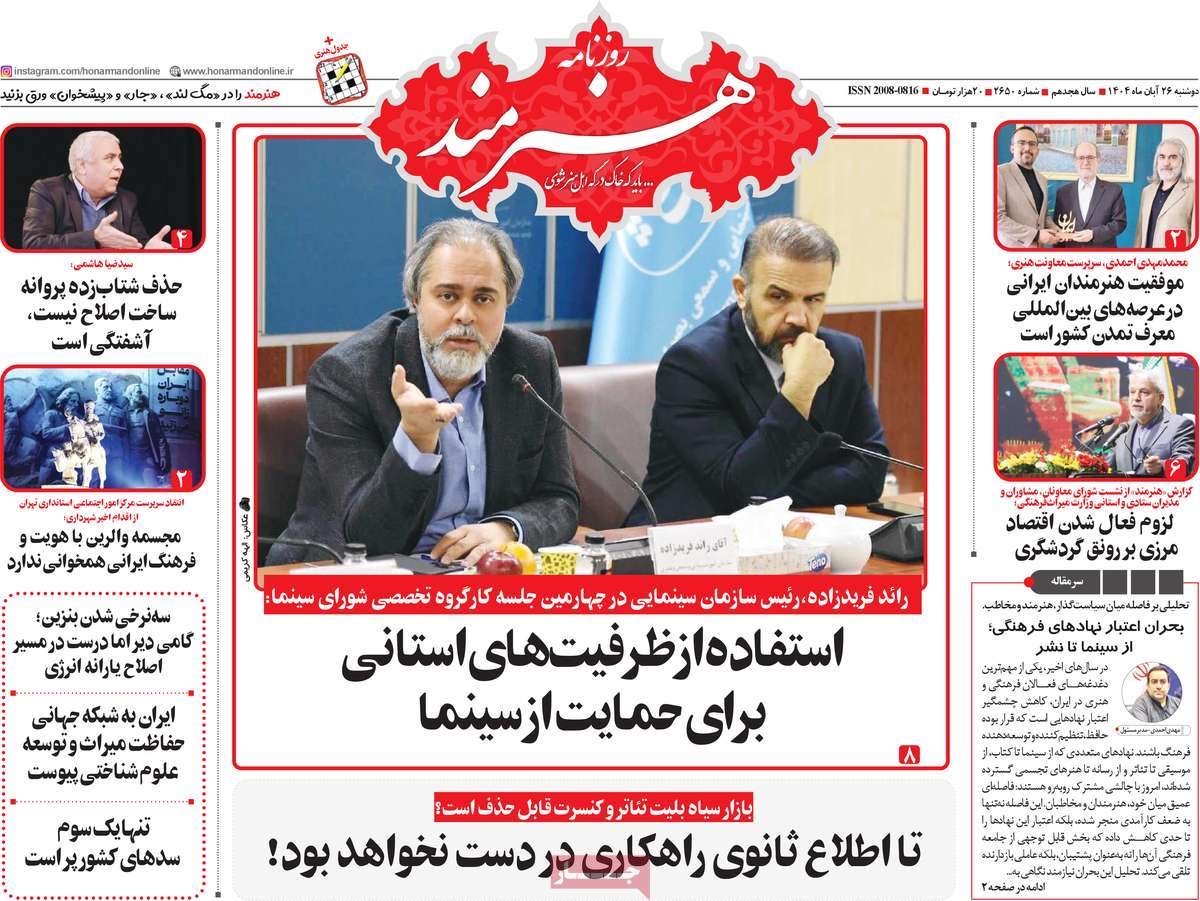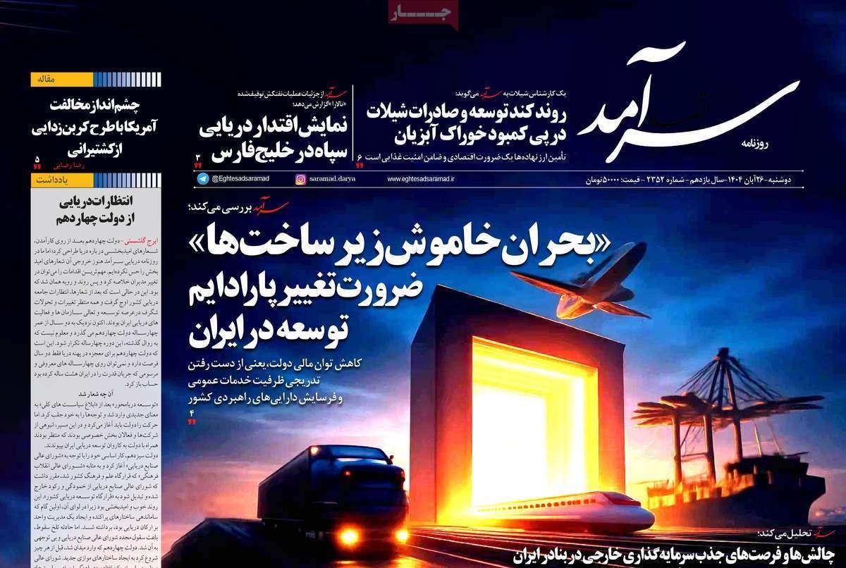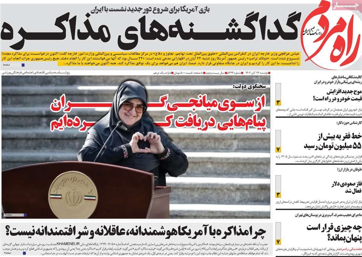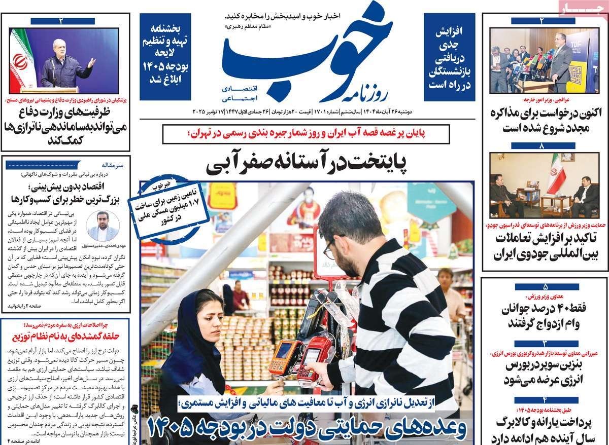 صفحه نخست روزنامههای دوشنبه ۲۶ آبان ۱۴۰۴