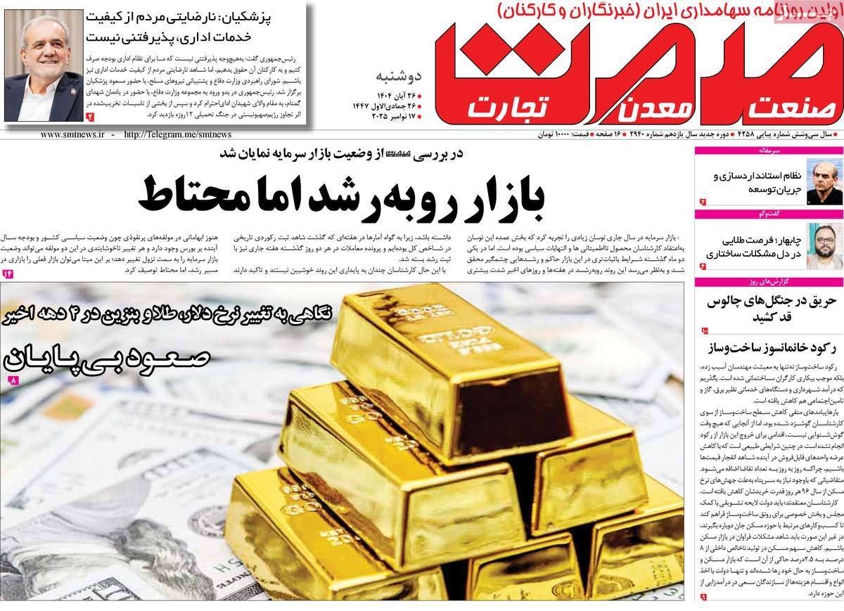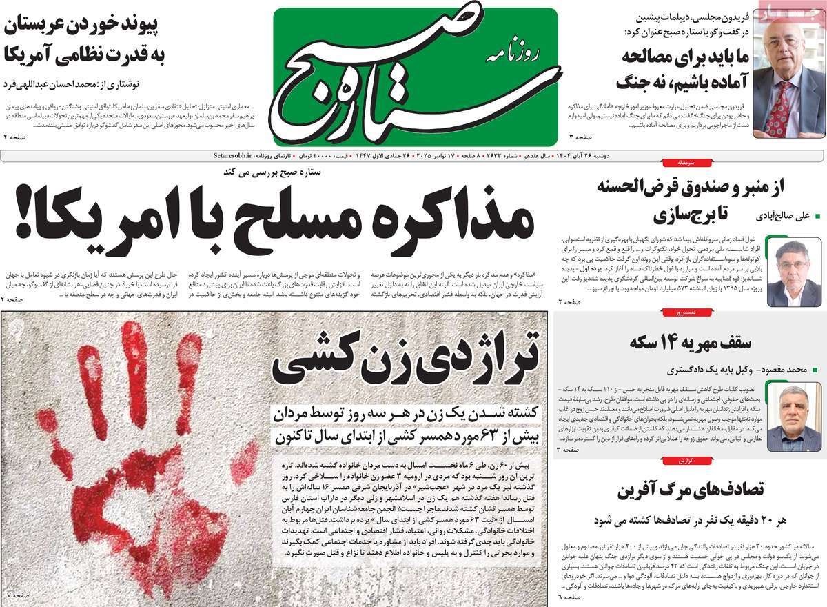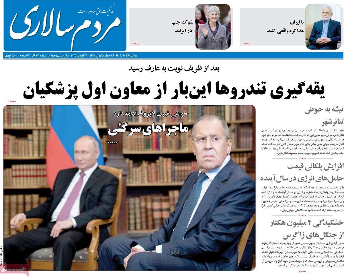 صفحه نخست روزنامههای دوشنبه ۲۶ آبان ۱۴۰۴