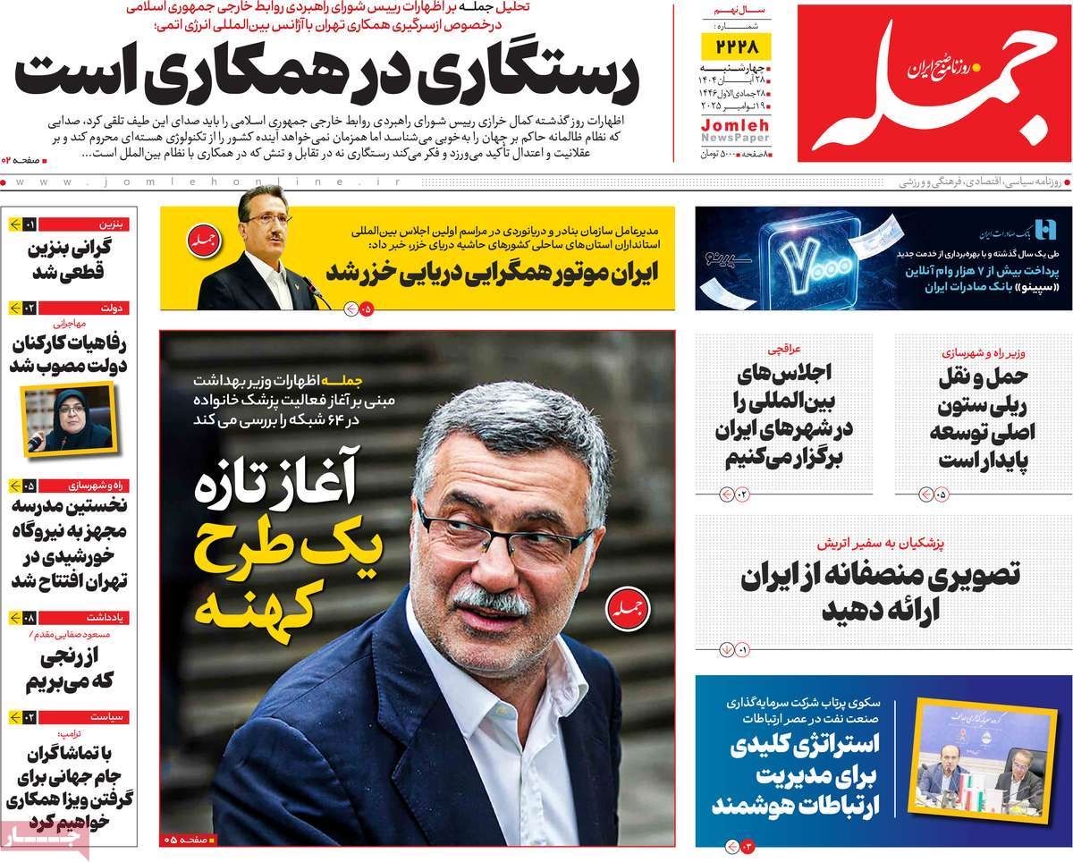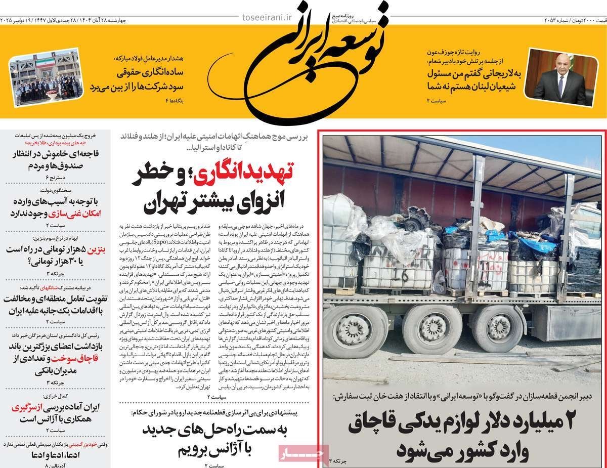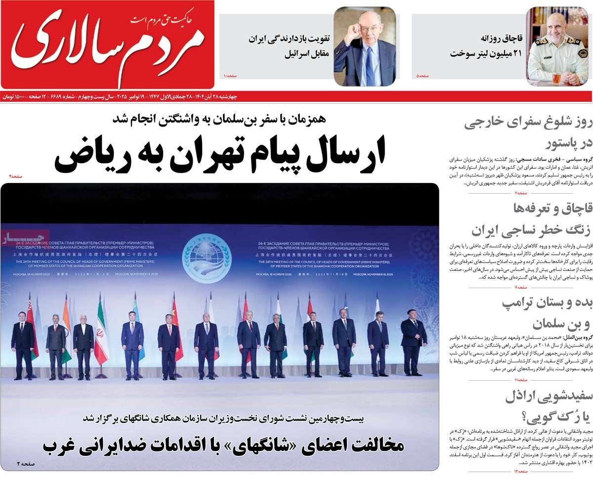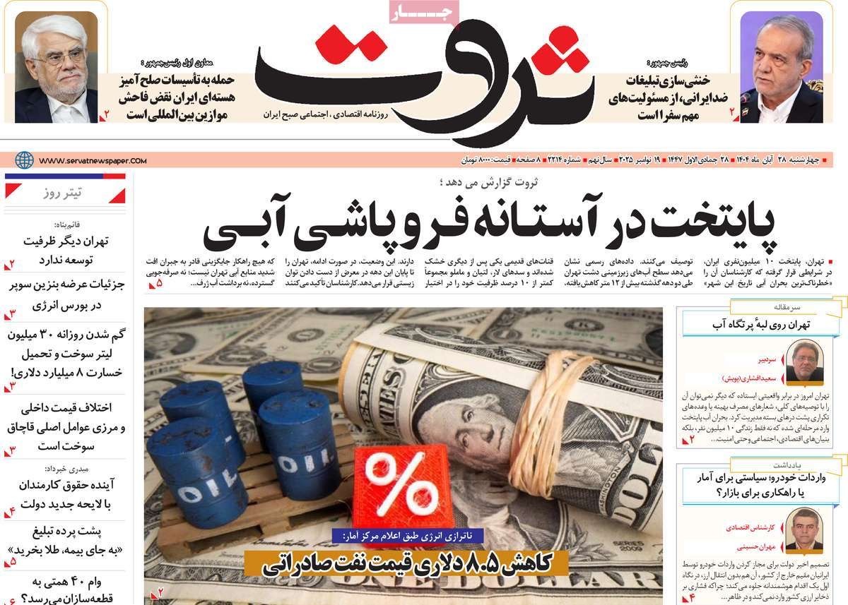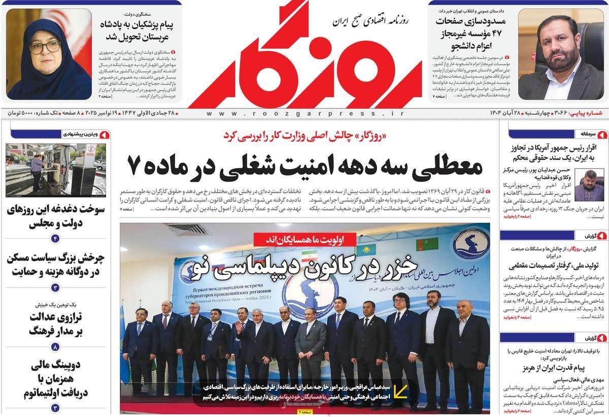 صفحه نخست روزنامههای چهارشنبه ۲۸ آبان ۱۴۰۴