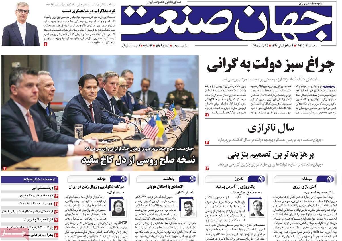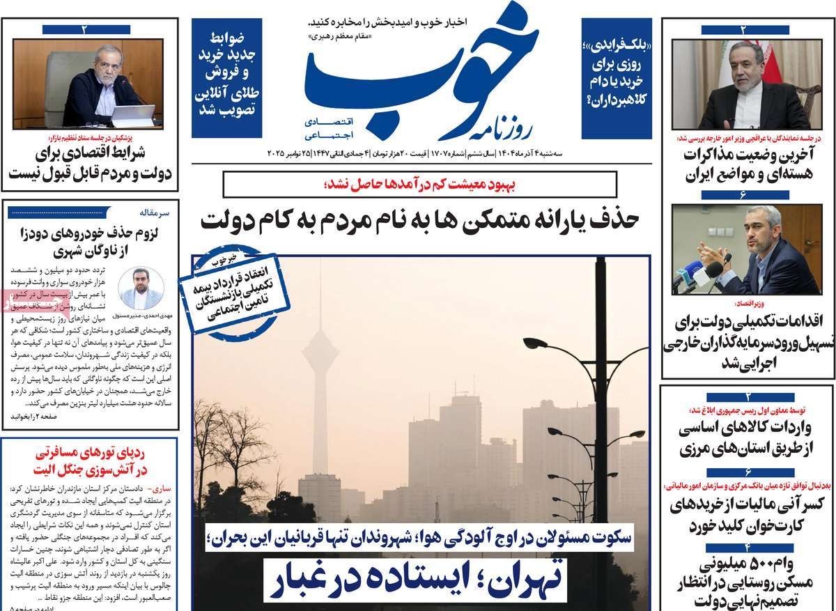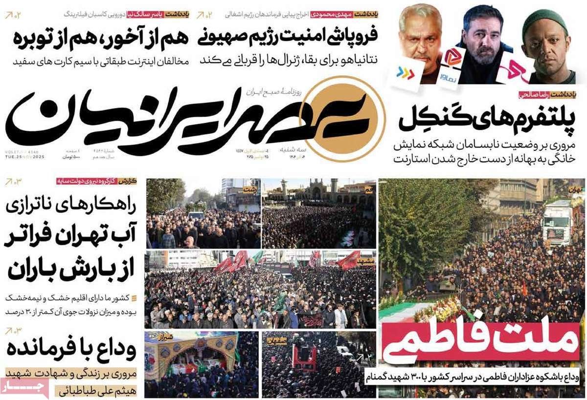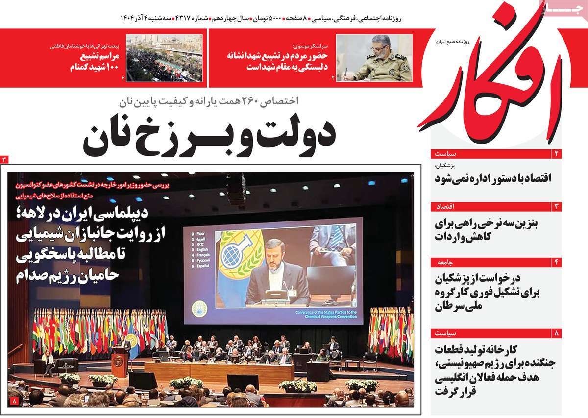 صفحه نخست روزنامههای چهارشنبه ۲۶ آذر ۱۴۰۴