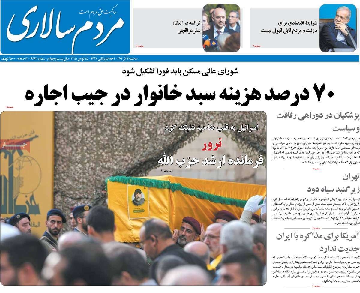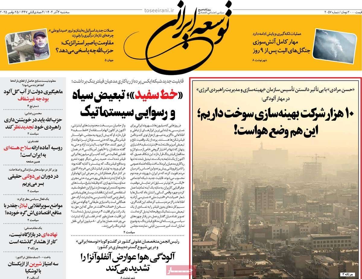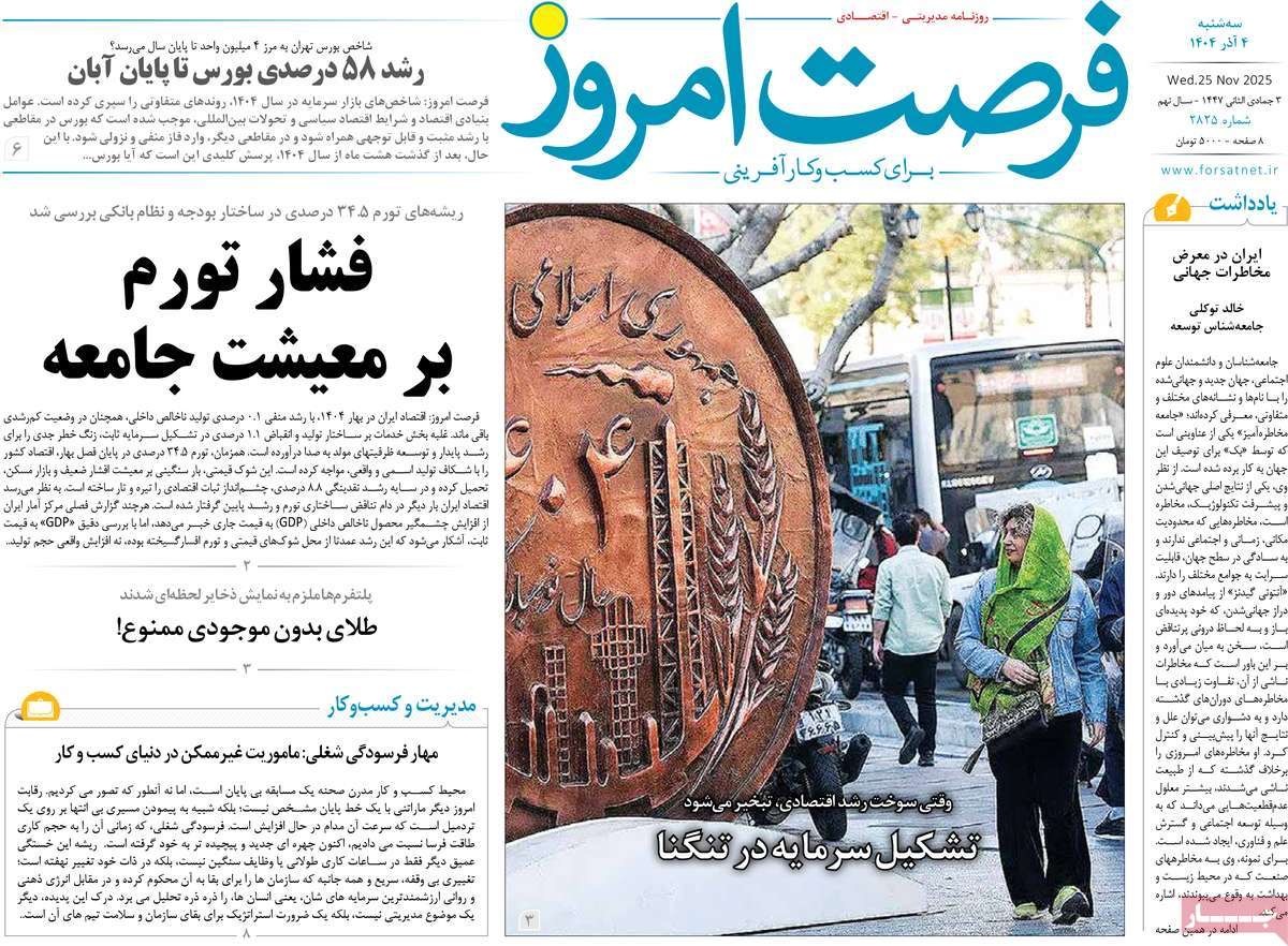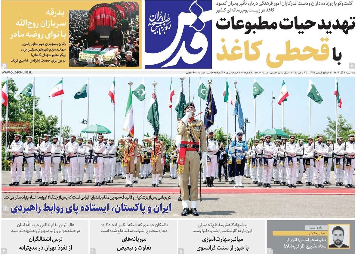 صفحه نخست روزنامههای چهارشنبه ۲۶ آذر ۱۴۰۴