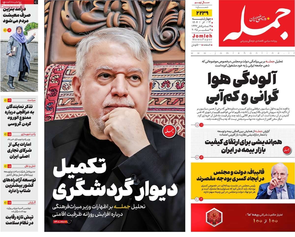 صفحه نخست روزنامههای چهارشنبه ۲۶ آذر ۱۴۰۴