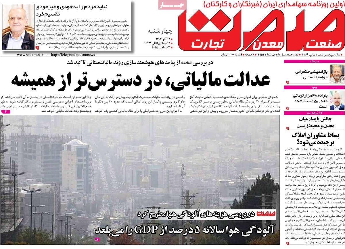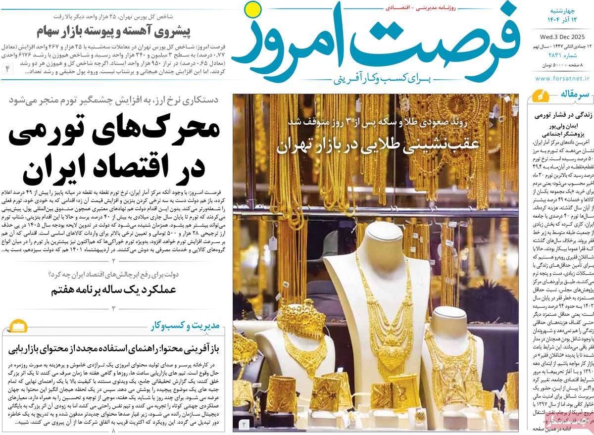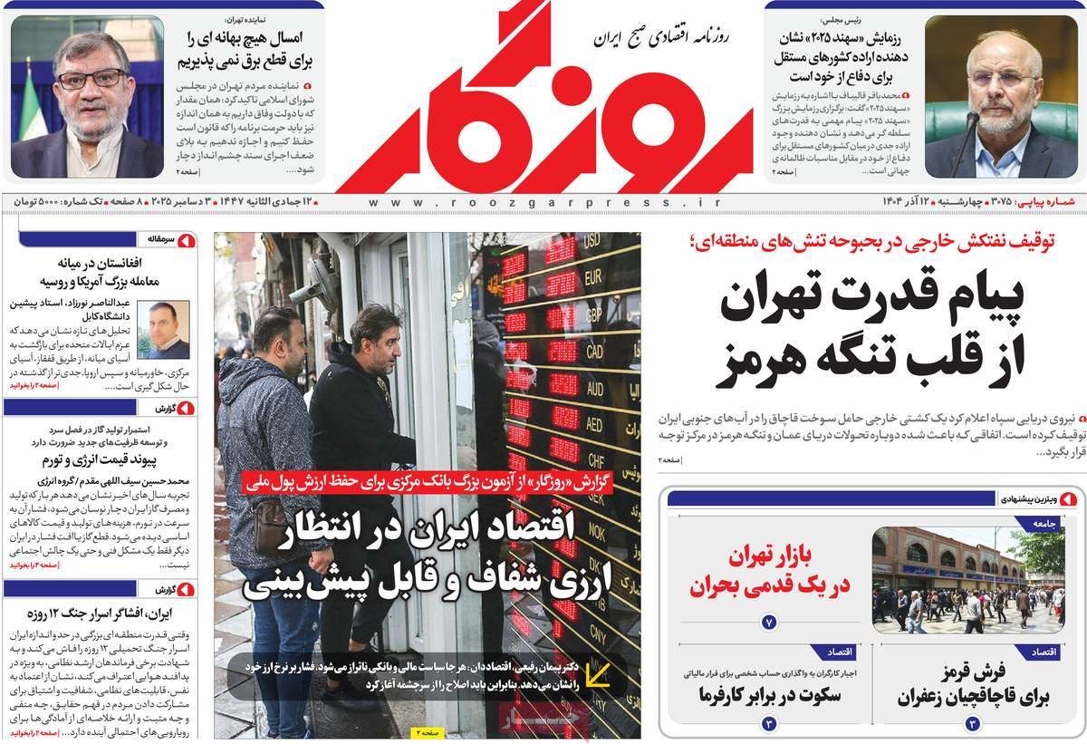 صفحه نخست روزنامههای چهارشنبه ۱۲ آذر ۱۴۰۴