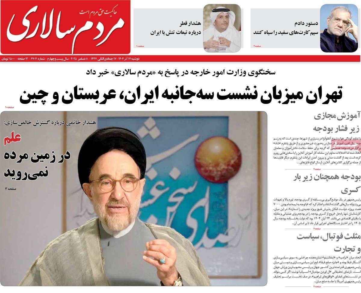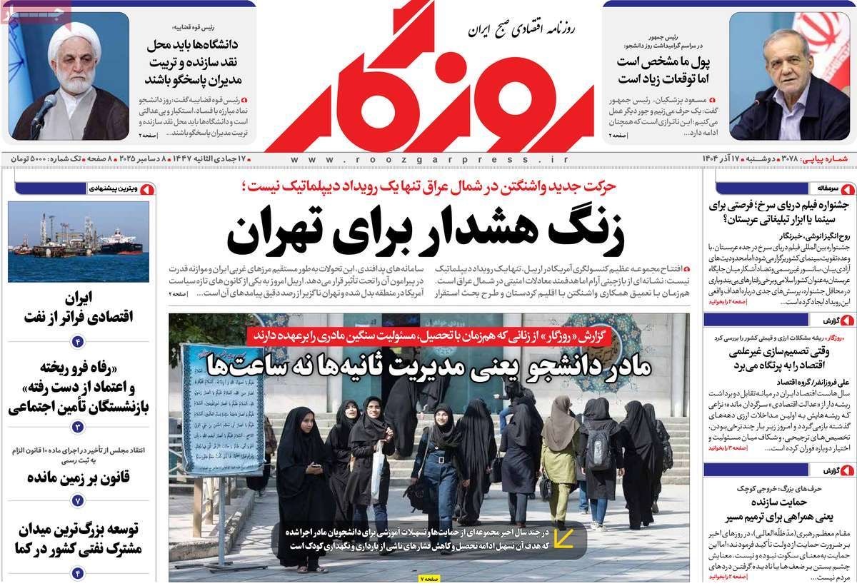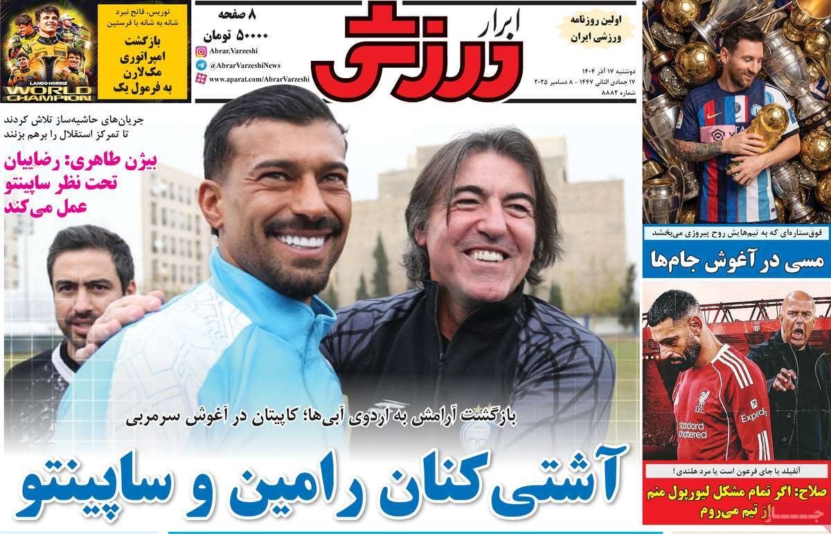 صفحه نخست روزنامههای دوشنبه ۱۷ آذر ۱۴۰۴