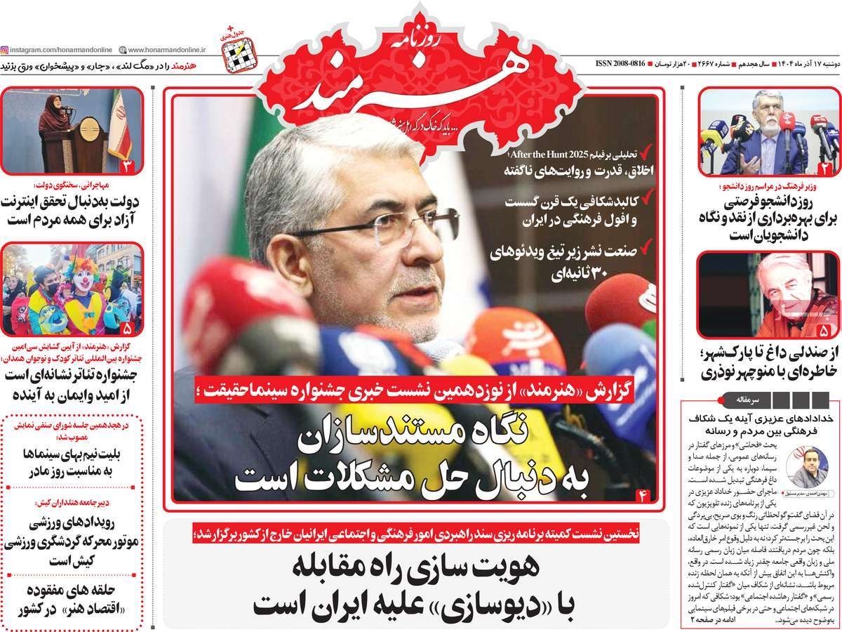 صفحه نخست روزنامههای سهشنبه ۲۵ آذر ۱۴۰۴