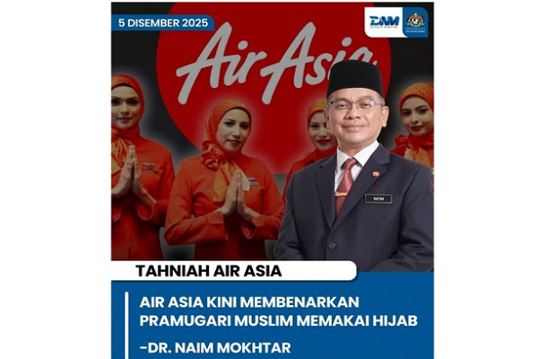 به گزارش ایکنا به نقل از برناما، وزیر امور دینی مالزی اعلام کرد: تصمیم شرکت هواپیمایی ایرآسیا برای مجوز استفاده مهمانداران زن از حجاب از اوایل سال ۲۰۲۶ به عنوان بخشی از لباس فرم خود، یک گام رو به جلو و یک اقدام خوشایند است.