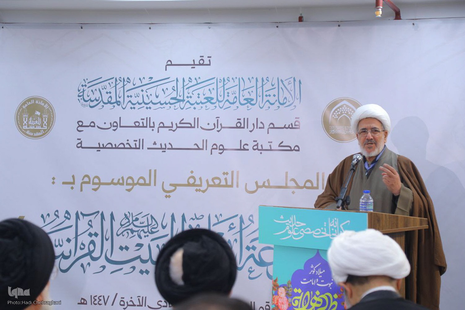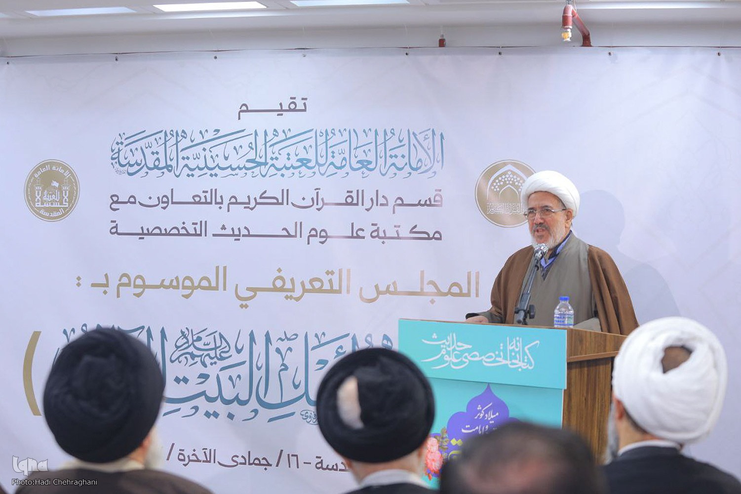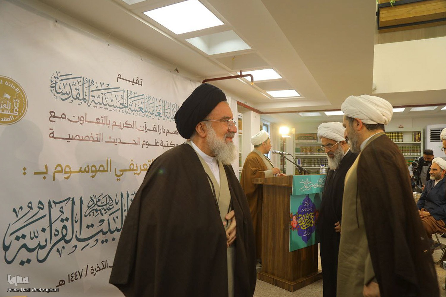 موسوعه «اهل البیت القرآنیه» با حضور جمعی از علمای حوزه علمیه قم و رئیس بخش دارالقرآن الکریم عتبه مقدسه حسینیه و به میزبانی کتابخانه تخصصی علوم حدیث قم وابسته به دفتر آیت‌الله العظمی سیستانی عصر روز گذشته در قم رونمایی شد.