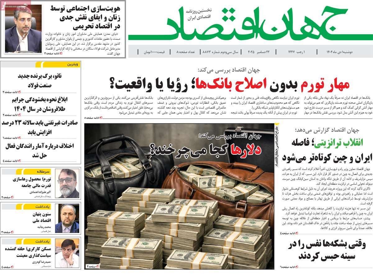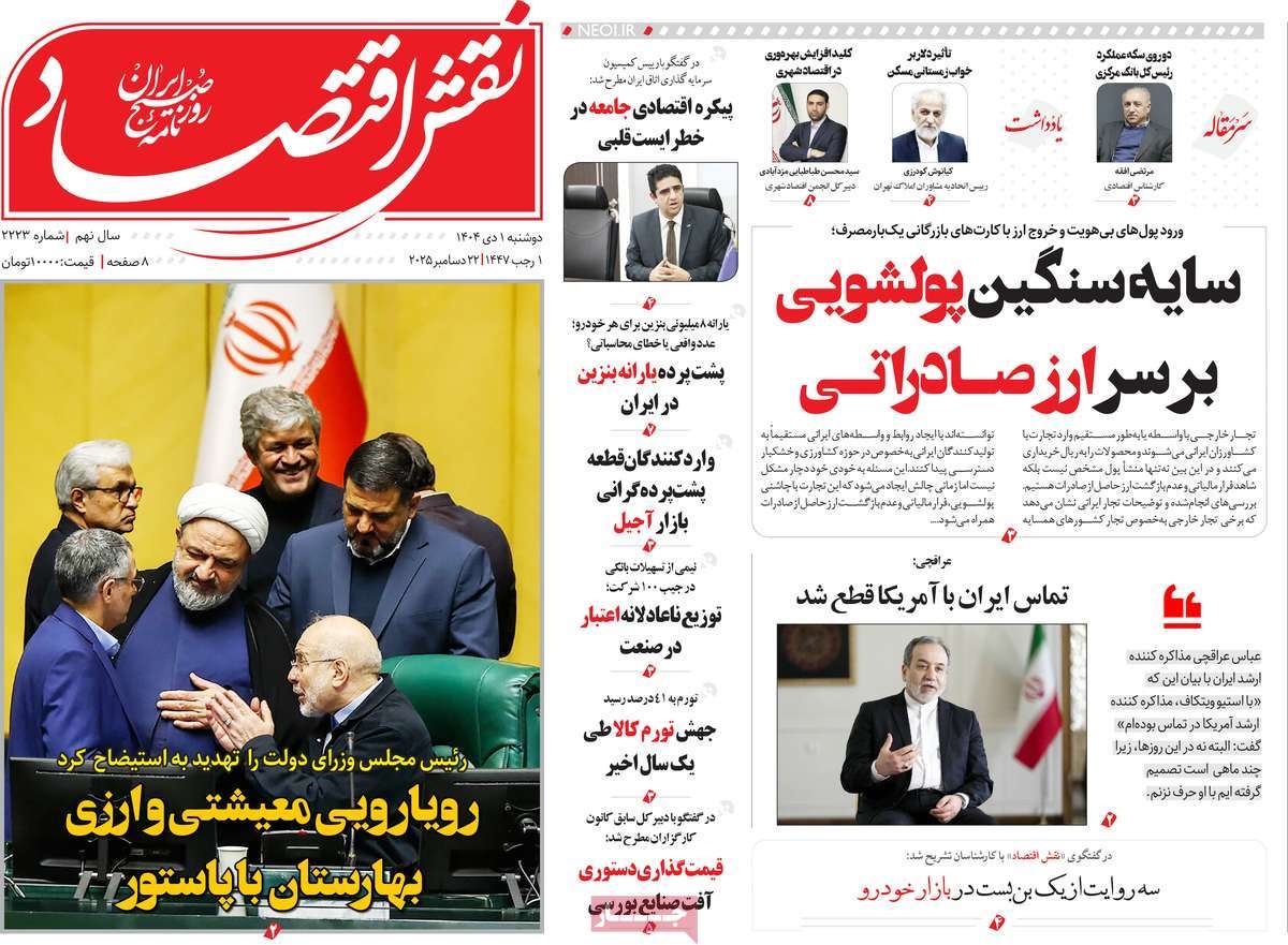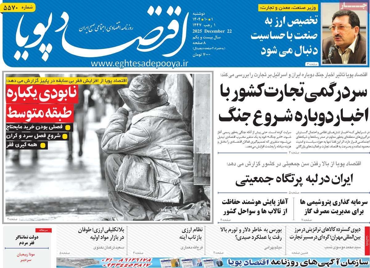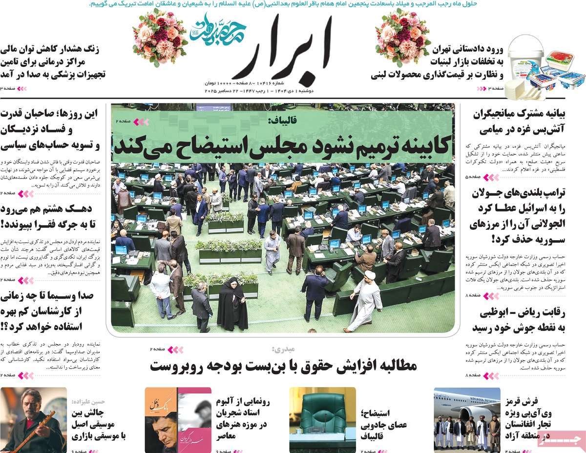 صفحه نخست روزنامههای دوشنبه ۱ دی ۱۴۰۴