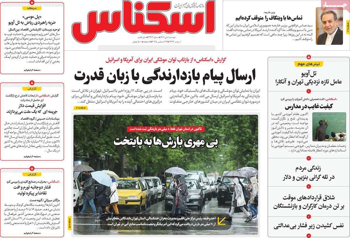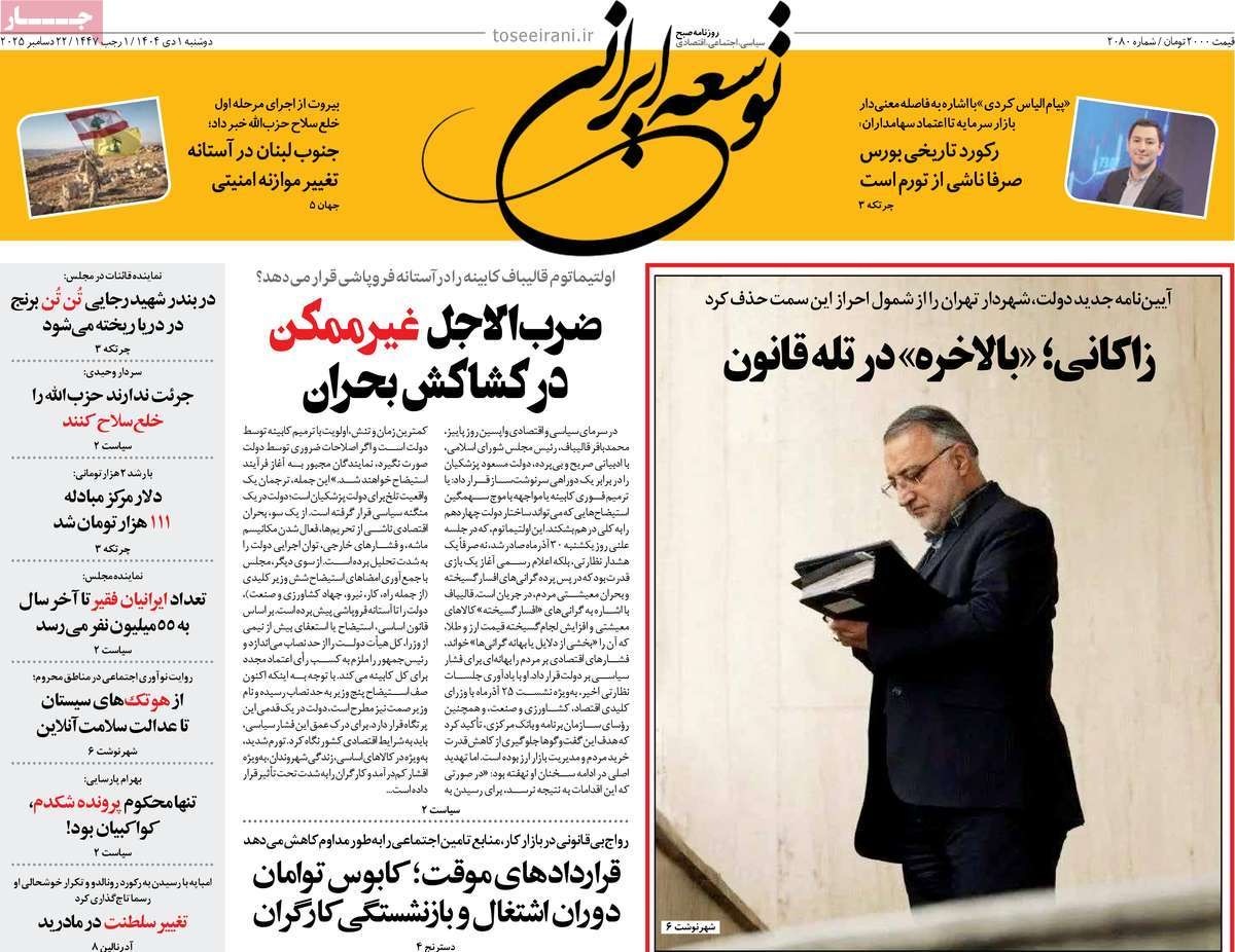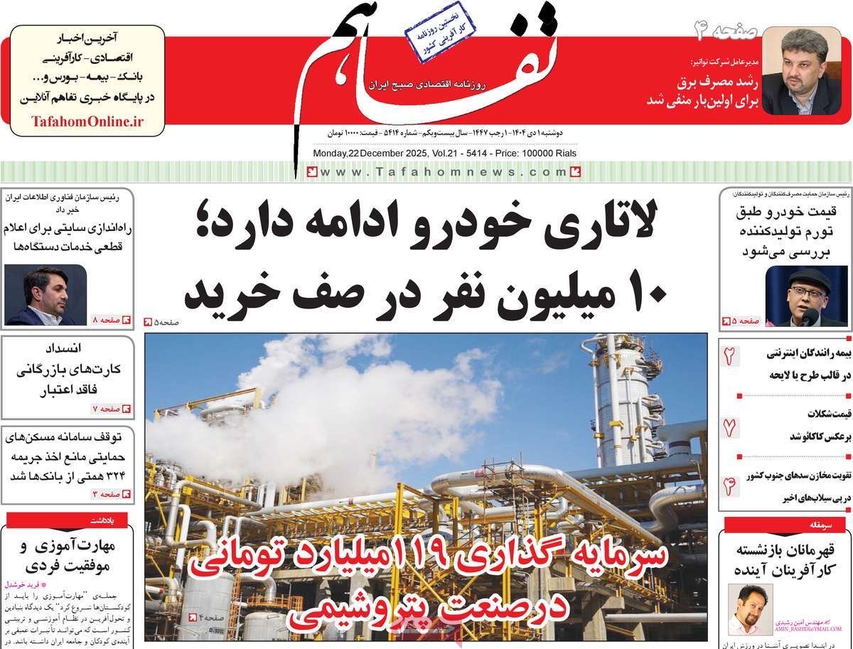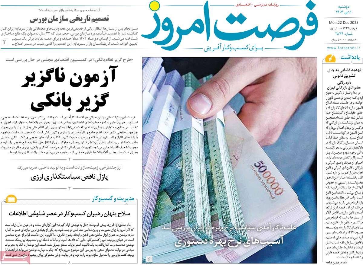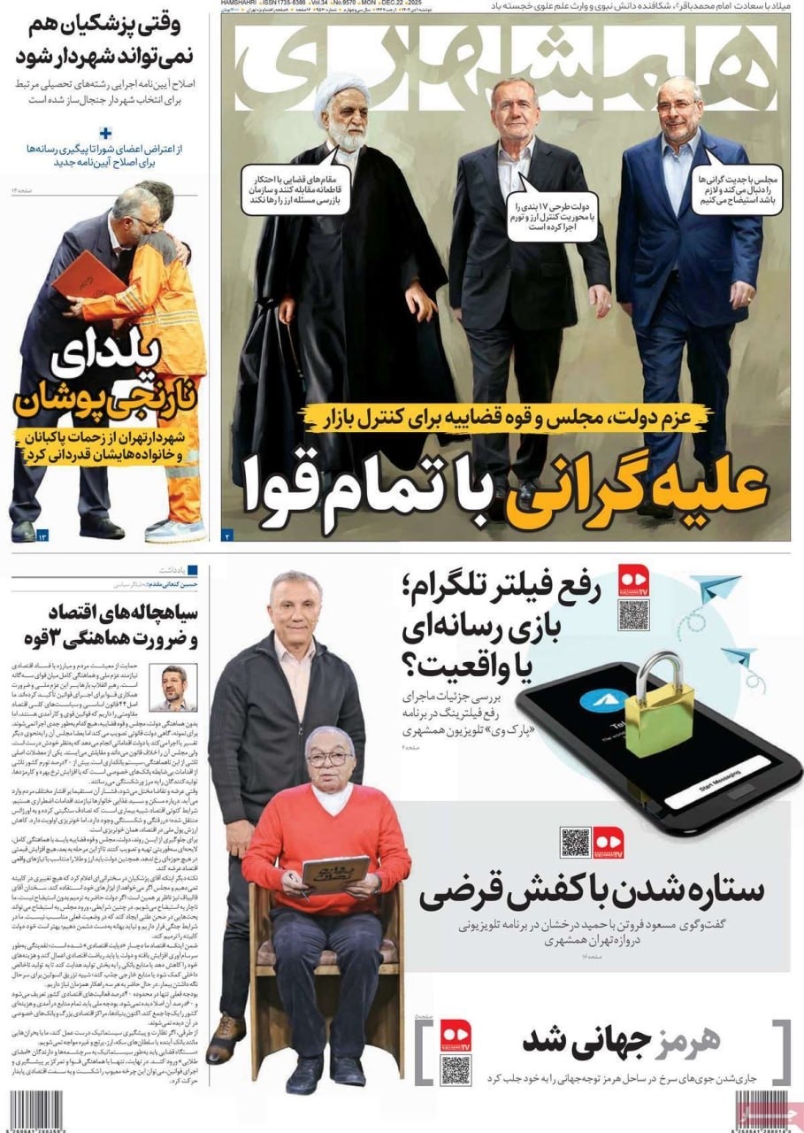 صفحه نخست روزنامههای دوشنبه ۱ دی ۱۴۰۴