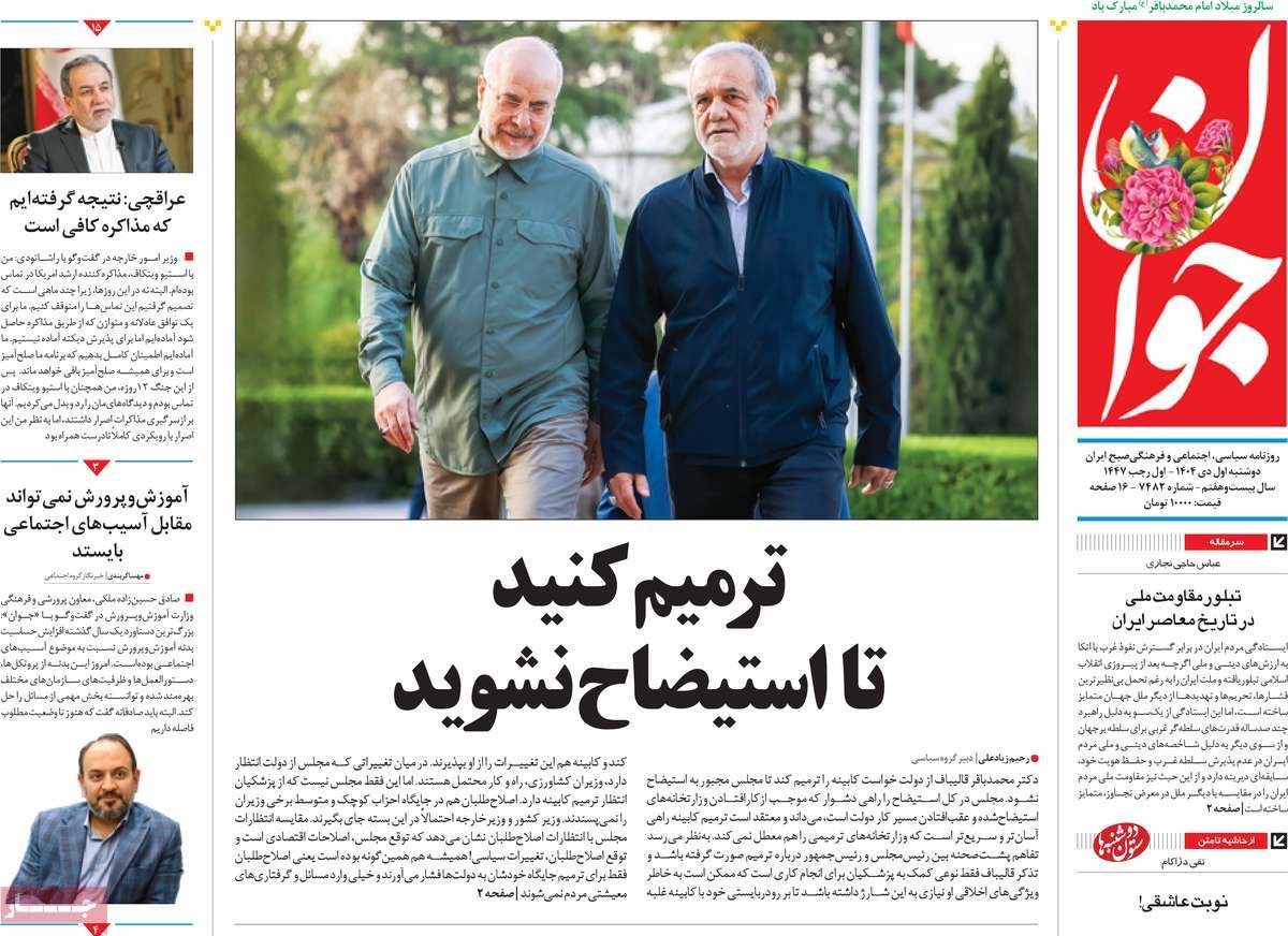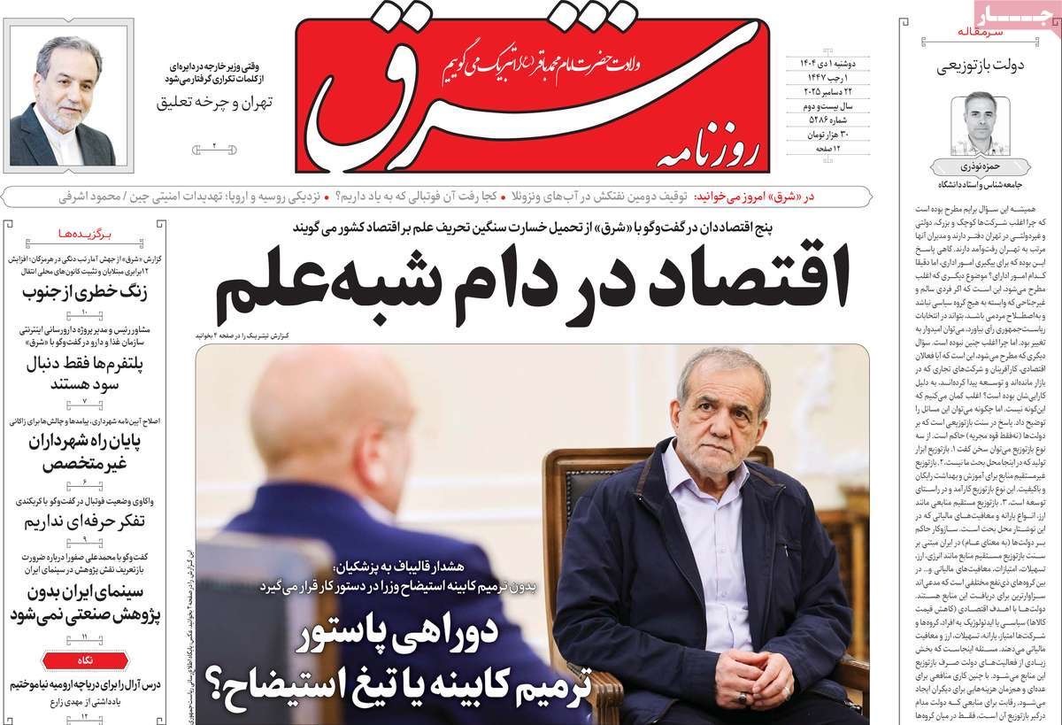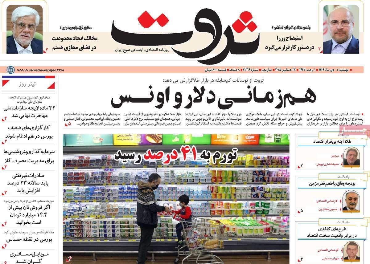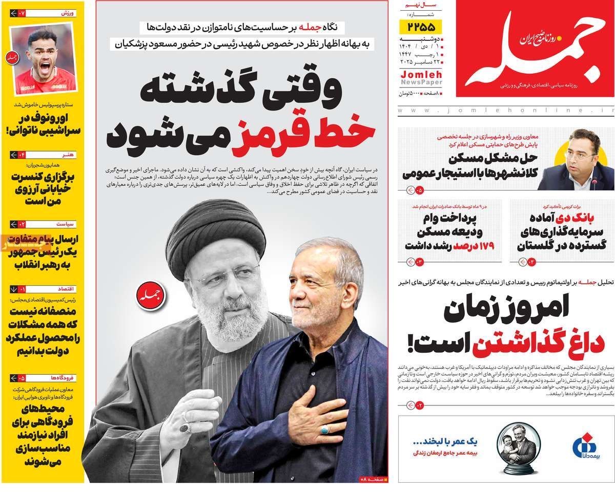 صفحه نخست روزنامههای دوشنبه ۱ دی ۱۴۰۴