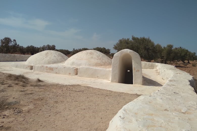 Troglodyte, ce lieu de culte renvoie aussi bien aux demeures de Matmata qu’aux villas souterraines de Bulla Regia et selon toute hypothèse, le caractère enfoui de cette mosquée s’explique par des raisons de climatisation.