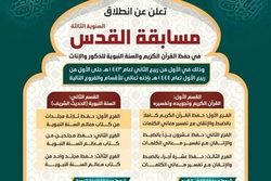 Le comité d'orientation et l’association Iqra ont fait état samedi dans un communiqué de la tenue du concours coranique d’Al-Quds qui commencera le dimanche 7 novembre, coïncidant avec le premier jour du mois hégirien Rabi al-Thani.