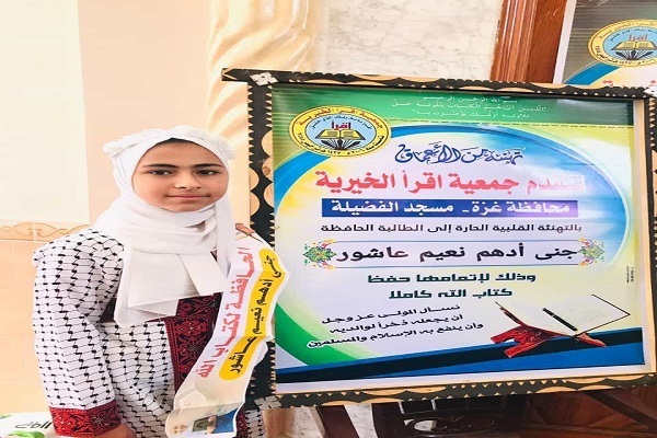 L’association de bienfaisance « Iqra », basée à Gaza, a organisé une cérémonie pour honorer cette adolescente, et les responsables de l’association ont souligné : « Nous demandons au Dieu Très-Haut de faire de cette réussite une bonne réserve pour elle et ses parents à l’au-delà et souhaitons que l’islam et les musulmans en bénéficient. »